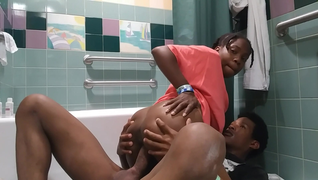 GIVING MY EBONY STEP-SISTER MORNING DICK ALL OVER THE SUITE IN VEGAS 9min